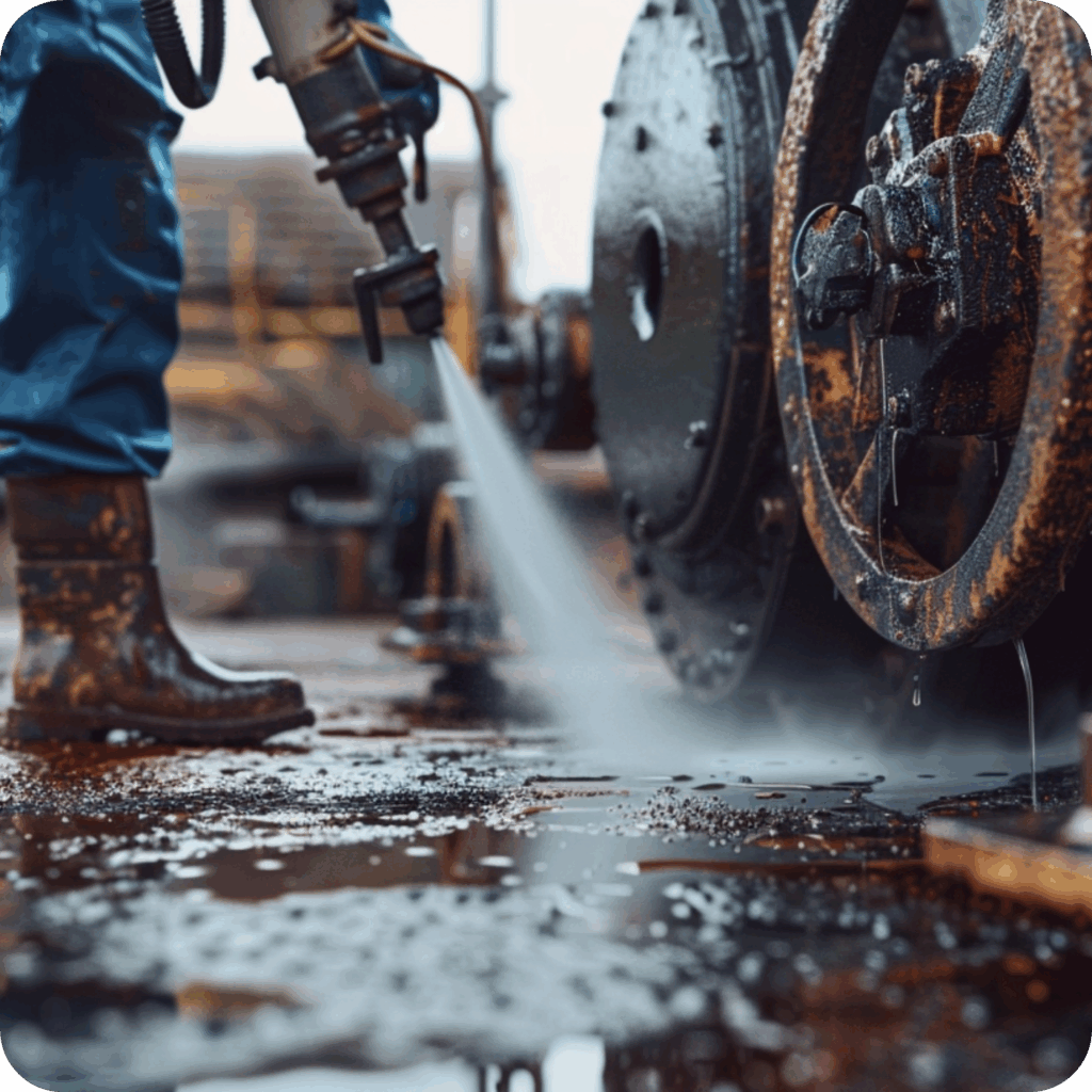 Soluciones técnicas para eliminar suciedad operacional en maquinaria y superficies.